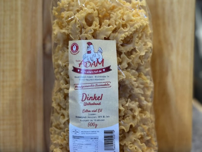Dieses Dinkel-Wellenband bietet eine breite, geriffelte Form, die Saucen gut aufnimmt. Der hohe Ei-Anteil sorgt für Struktur und einen runden Geschmack.